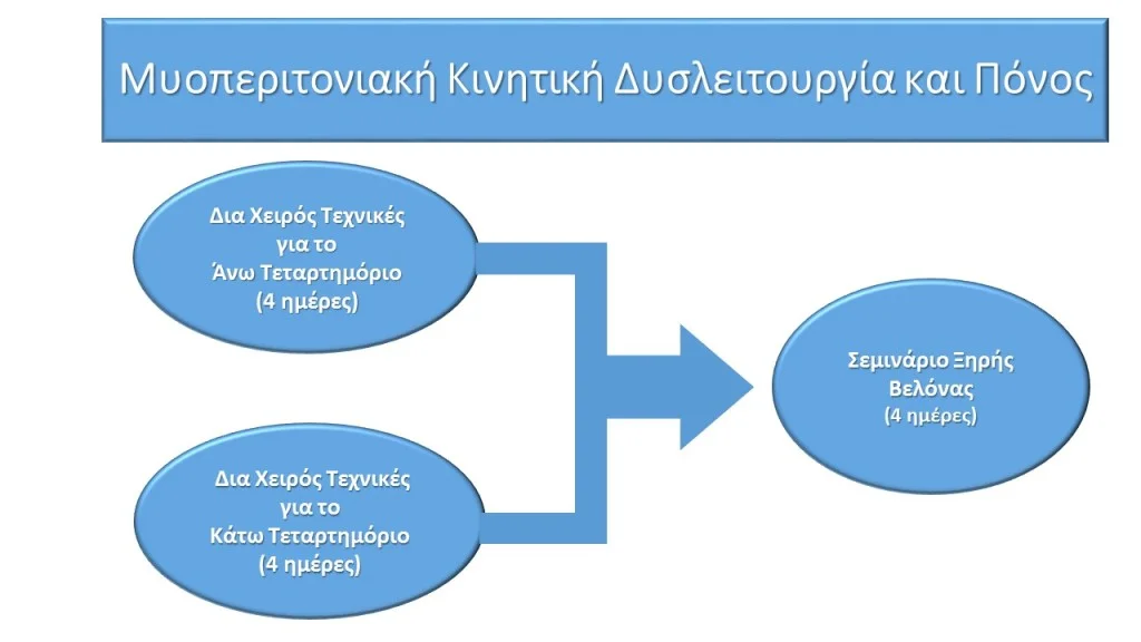 Ο κύκλος σεμιναρίων παρουσιάζει μία ολοκληρωμένη προσέγγιση αξιολόγησης και θεραπείας των μυοπεριτονιακών δυσλειτουργιών με βάση τη σύγχρονη θεραπευτική συλλογιστική.
